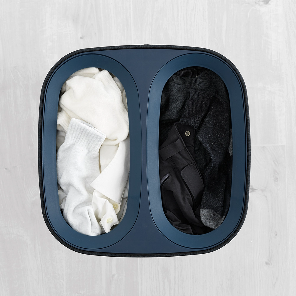 De Tota zwarte wasmand biedt niet alleen een efficiënte manier om je wasgoed te scheiden, maar past ook perfect bij elke interieurstijl, waardoor je huis altijd georganiseerd en stijlvol blijft. De Tota zwarte wasmand heeft een tijdloze uitstraling en is functioneel zowel in de badkamer, slaapkamer als in het washok te gebruiken. De lussen aan de onderzijde van de tassen helpen je om ze gemakkelijk te legen, en dankzij de zelf schuine rand plaats je de tassen eenvoudig terug in de wasmand zonder gedoe, ze zakken er zo in.