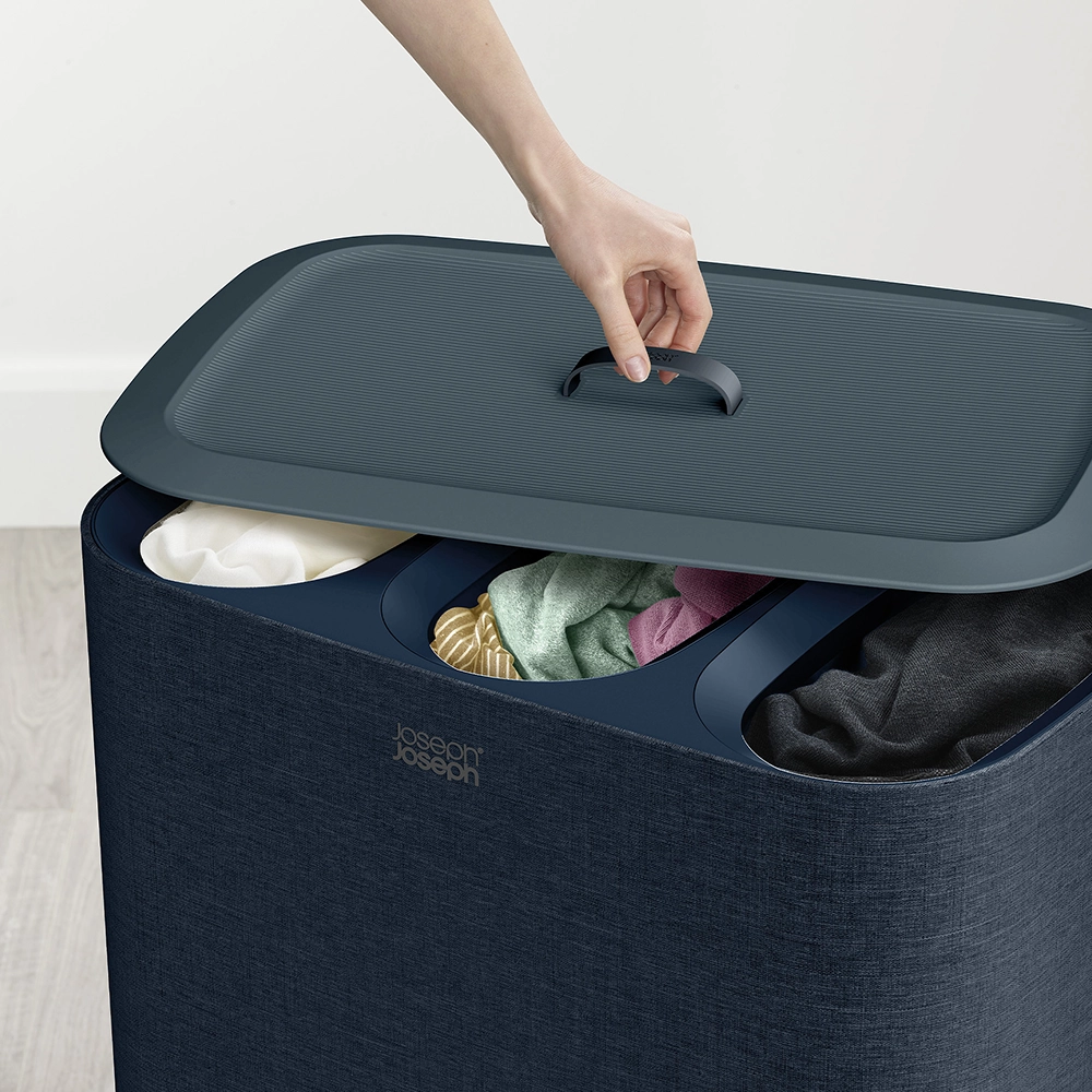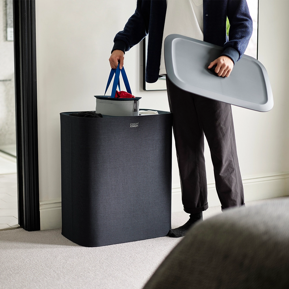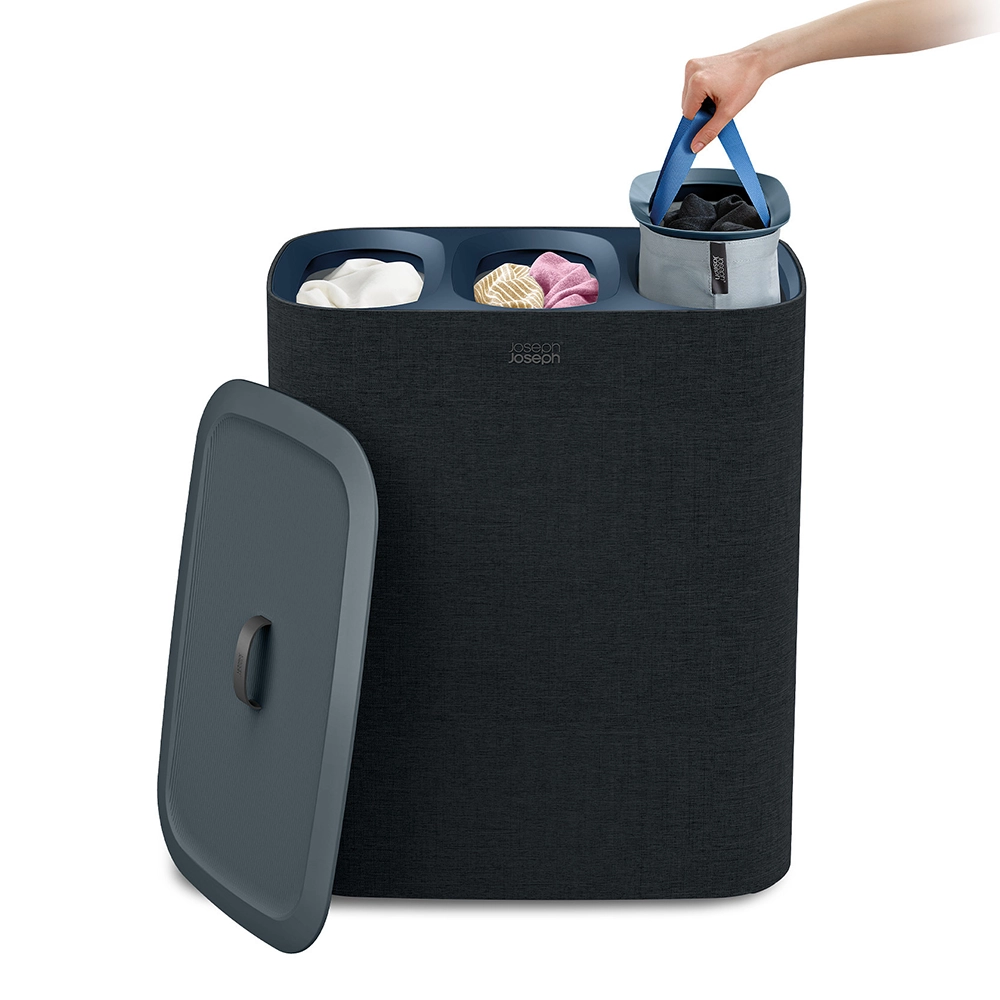 Zoek je een stijlvolle oplossing voor het sorteren van je wasgoed? De slimme Tota zwarte wasmand van Joseph Joseph combineert elegantie met functionaliteit, ideaal voor het eenvoudig en geordend scheiden van je wasgoed.