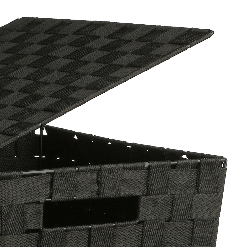 Deze zwarte wasmand met deksel is perfect voor het opbergen van je vuile was. Met een inhoud van 50 liter biedt deze mand voldoende ruimte voor een middelgrote hoeveelheid wasgoed.