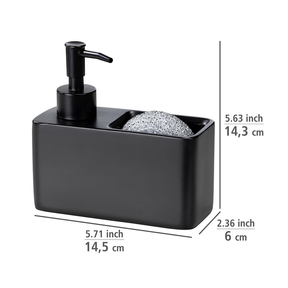 Zwarte zeepdispenser met sponshouder Wenko - 150 ml