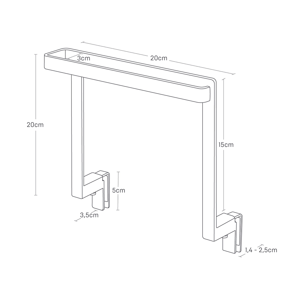 Dankzij de verstelbare klemmen blijft de stang stevig op zijn plek, zelfs wanneer je de kastdeur opent en sluit. Deze handdoekstang keuken is ontworpen om naadloos in elk keukeninterieur te passen. Met een breedte van 20 cm, een diepte van 10 cm en een hoogte van 19,5 cm biedt de stang voldoende ruimte voor het ophangen van keukendoeken. De extra haak aan de stang biedt bovendien ruimte voor kleinere items zoals een doekje of borstel. Deze zwevende handdoekhouder keuken is geschikt voor kast- en lade diktes van ongeveer 2 cm, wat het een veelzijdige toevoeging maakt voor elke moderne keuken.