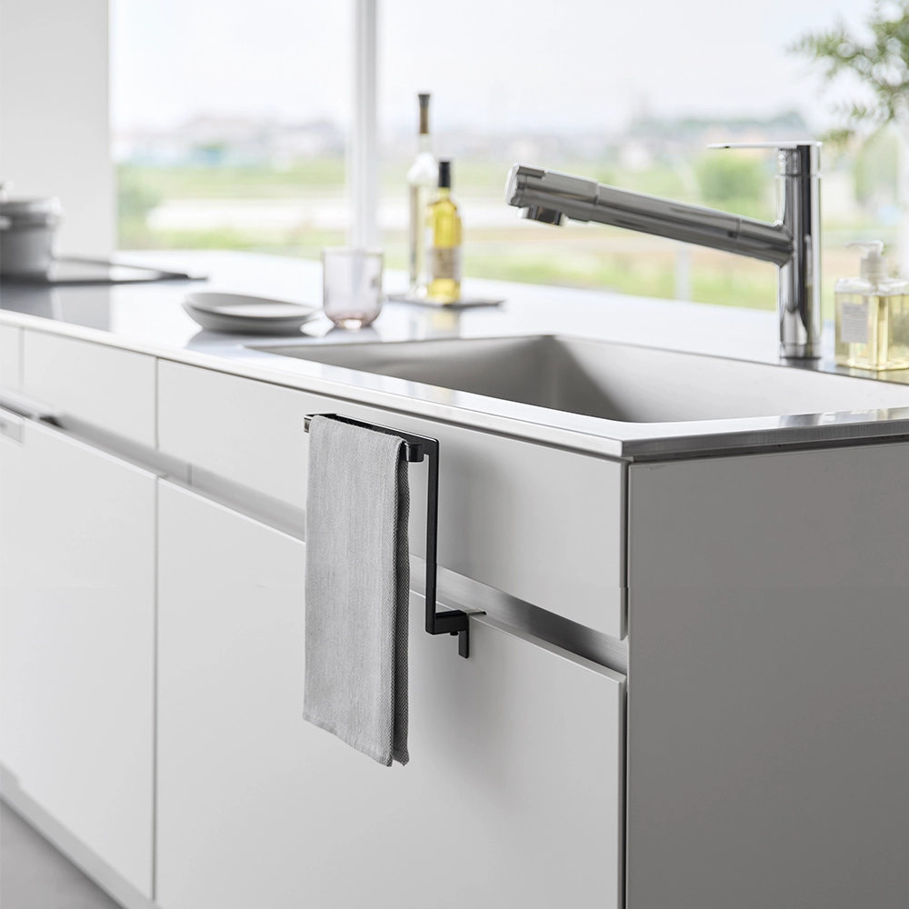 De handdoekstang voor in de keuken van Yamazaki biedt een oplossing voor het ophangen van handdoeken en theedoeken in de keuken. Dit slimme handdoekrekje kan eenvoudig worden bevestigd aan een keukenkastje of lade, waardoor het opbergen van handdoeken binnen handbereik wordt zonder extra ruimte in beslag te nemen.